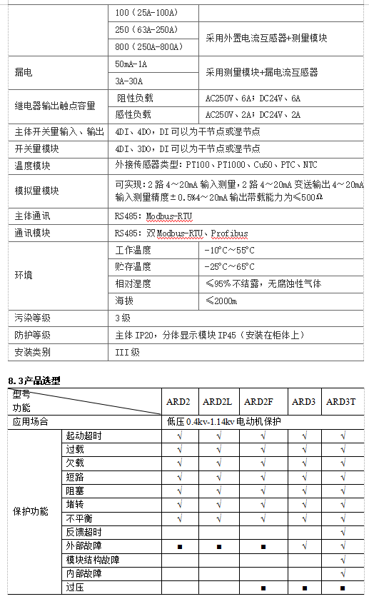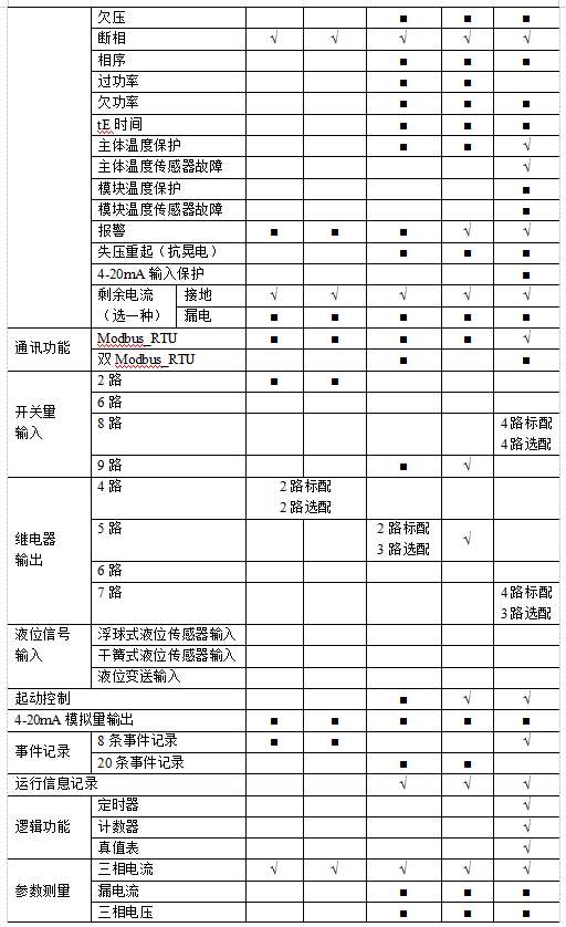 (3)提供了全系列的马达保护方案,用户可以根据应用需要为马达选择不同的保护功能。