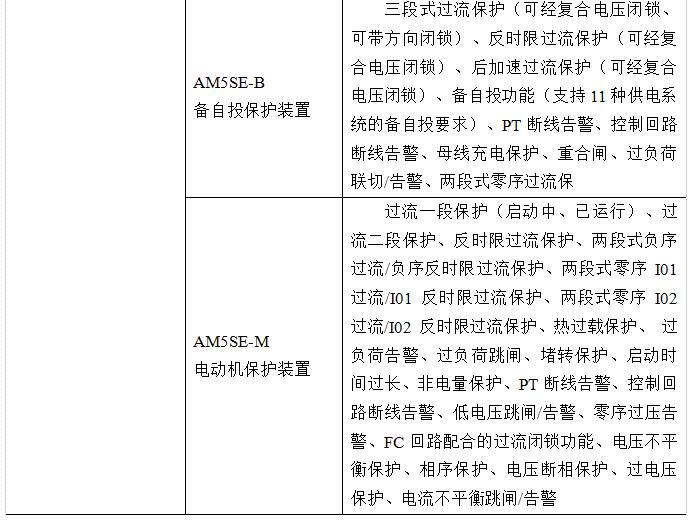 针对中原科技城智慧能源站配电工程中不同对象配置不同微机保护装置,其中,进线柜配置AM5SE-F线路保护装置,PT柜配置AM5SE-UB PT监测及并列保护装置,配电变压器柜配置AM5SE-T变压器保护装置,母联柜配置AM5SE-B备自投保护装置,电容出线柜配置AM5SE-C电容器保护装置,电机出线柜配置AM5SE-M电动机保护装置,这几款微机保护装置主要通过以下保护功能实现对高压柜的设备运行情况实时监视和保护: