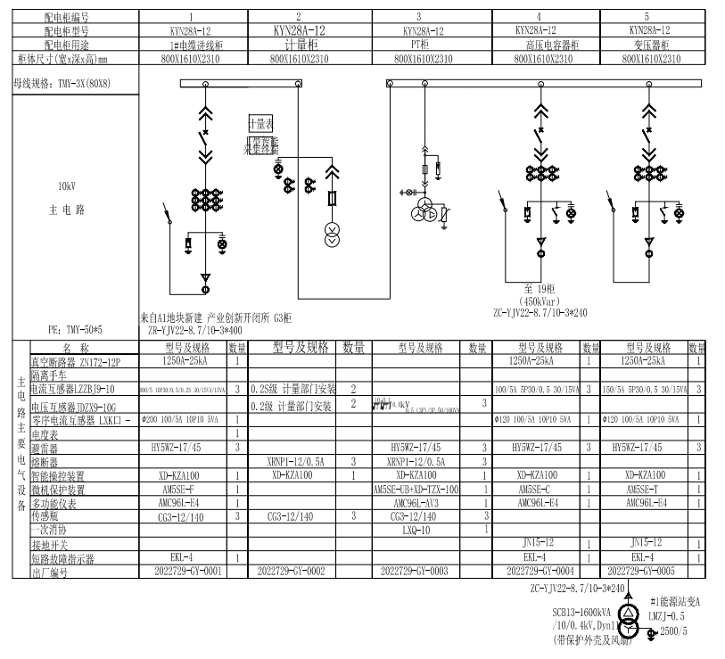 本项目为综合智慧能源A1和A4能源站10kV项目,项目地处于中原科技城核心起步区内,每个进线来源均为产业创新开闭所。进出线柜分别采用电缆上进线和上出线的方式,并采用KYN28-12型金属铠装手车式真空开关柜。两个能源站均为两进线一母联的供电系统,并带有多个变压器、电动机、电容器的出线回路。