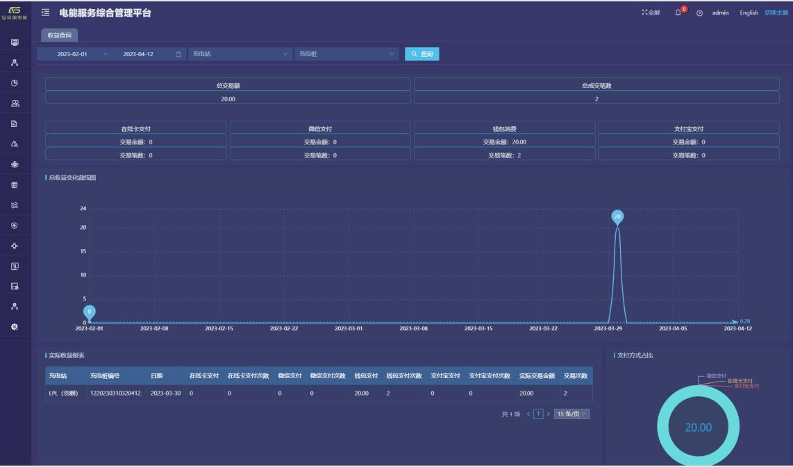 收益查询:提供收益汇总、实际收益报表、收益变化曲线、支付方式占比等功能。