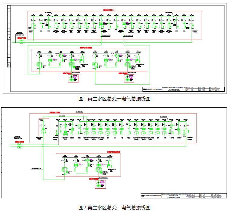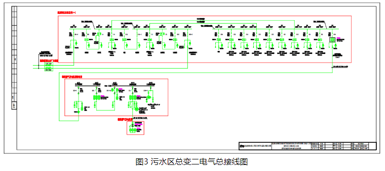 该沼气发电项目共有3个总配电室,分别为再生水区总变一、再生水区总变二和污水区总变二。共安装4台内燃发电机组,通过4个并网点,采用10kV电压等级的单母线分段系统接入用户内部系统。供电系统图及配置如下: