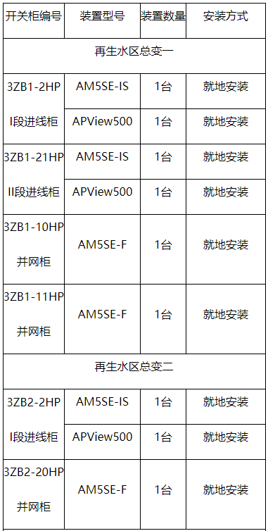 3座工程所设微机保护、电能质量在线监测装置型号与数量如下: