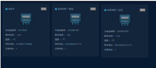统计当前充电站各充电桩回路的数据;通过卡片的形式展现充电桩的数据;显示故障列表;如图所示: