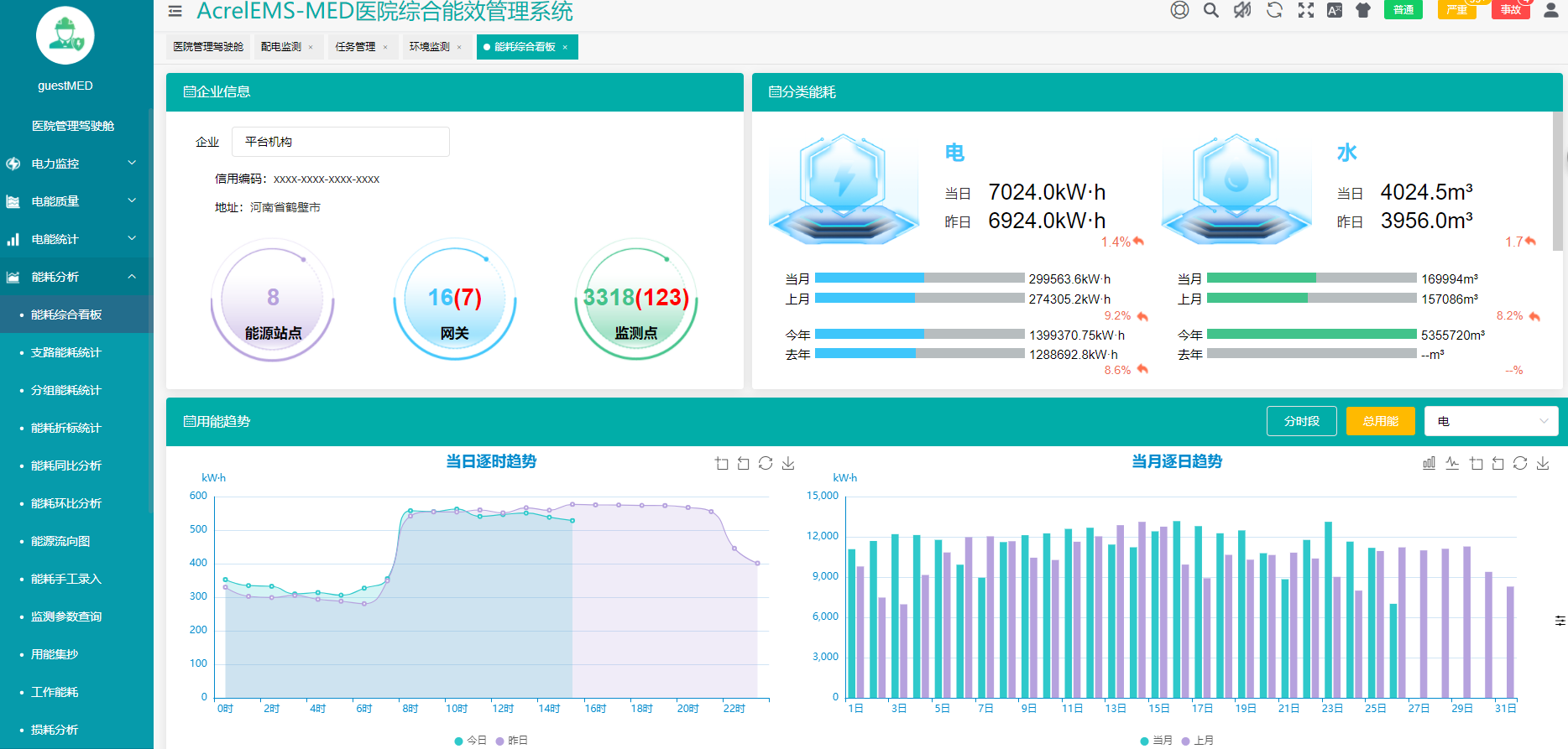 ①搭建医院智慧能源管理系统的基本框架,对各个用能环节进行实时监测;