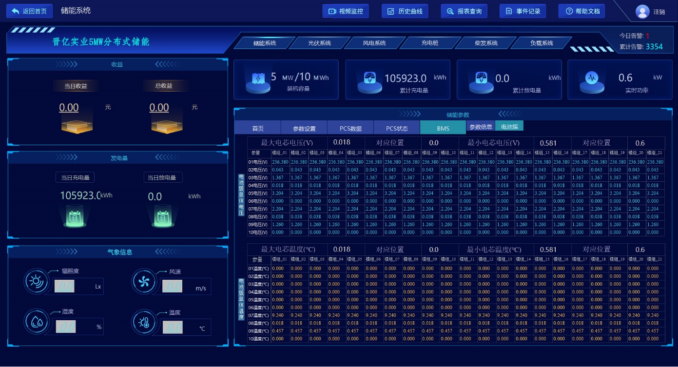 PCS作为储能系统与电网之间的桥梁,负责控制电池的充放电过程,将电池存储的直流电能转换为交流电能,或者将交流电能转换为直流电能以存储在电池中。系统监测显示PCS的运行状态、运行参数限值,交直流侧的运行状态、运行参数数据,系统对PCS的监控是确保储能系统高效、安全运行的关键。