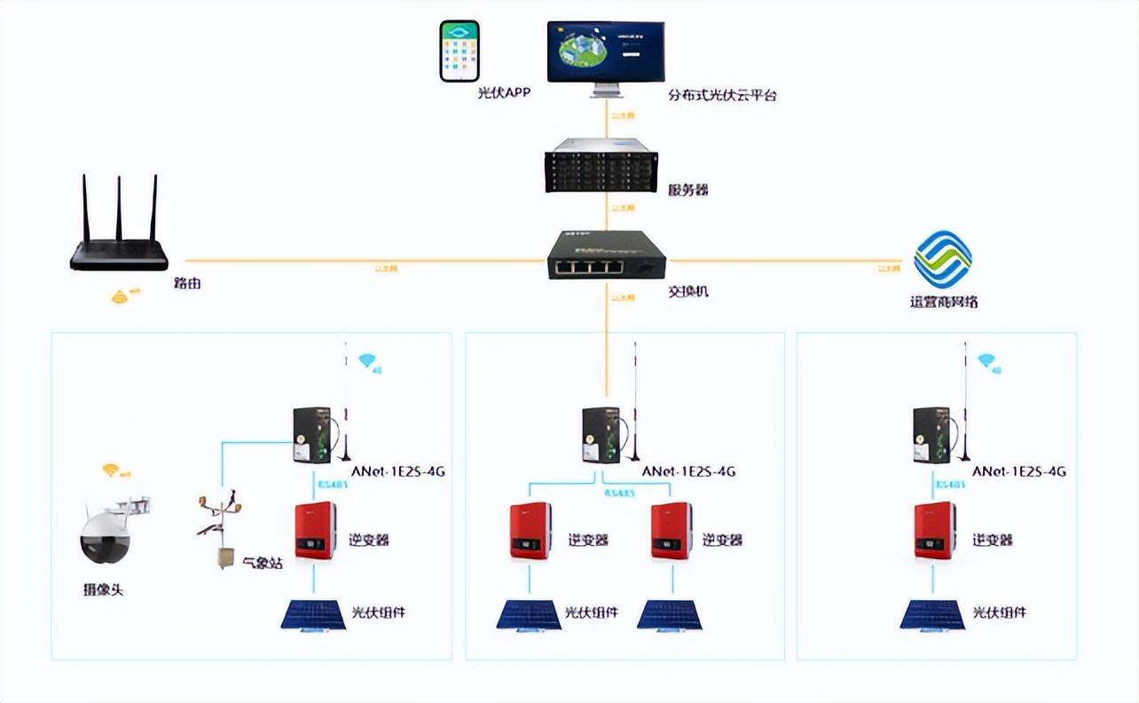 部分小型光伏电站为自发自用,余电不上网模式,这种类型的光伏电站需要安装防逆流保护装置,避免往电网输送电能。光伏电站规模较小,而且比较分散,对于光伏电站的管理者来说,通过云平台来管理此类光伏电站非常有必要,开云官方端网站登录入口在这类光伏电站提供的解决方案包括以下方面:
