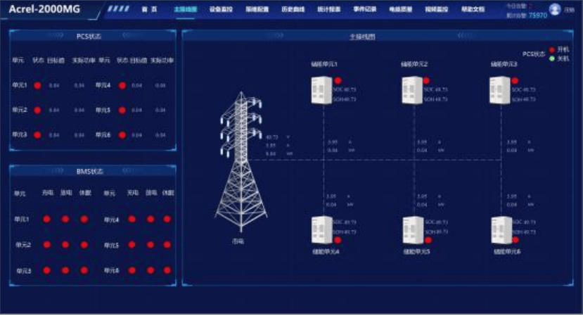 对系统环境、光伏组件、光伏逆变器、风电控制逆变一体机、储能电池、储能变流器、用电设备等进行实时监测,掌握微电网系统的运行状况。