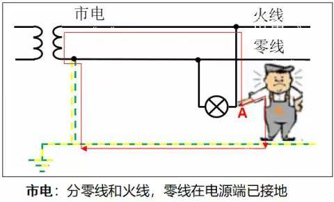 1、人站在地上,相关于人体与电源零线相连。人体碰到火线(图中A点),电流就会通过人体、大地回到电源零线,构成电流回路。人体会触电。