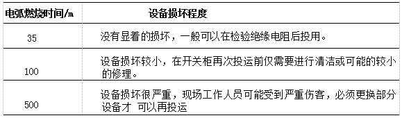 表1各电弧燃烧时间下设备的损坏情况