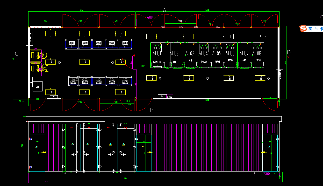 预支舱尺寸为(长*宽*高)15000mm*4400mm*3500mm,门档高2600mm,安全门档高2200mm,底框采用20#H钢、14#、10#槽钢、5#角钢焊接,外板为2.0mm瓦楞波纹板+中间50mm防火岩棉+内板1.0mm镀锌板制作,一次室底板为3.0mm钢板,二次室底板为静电地板抬高200。