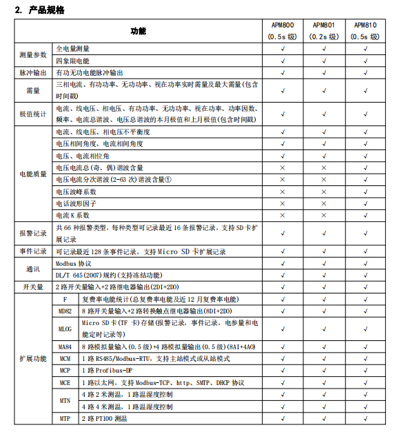 APM系列网络电力仪表按IEC标准设计,具有全电量测量,电能统计,电能质量分析及网络通讯等功能,主要用于对电网供电质量的综合监控诊断及电能管理。该系列仪表采用了模块化设计,当客户需要增加开关量输入输出,模拟量输入输出,SD卡记录,以太网通讯时,只需在背部插入对应模块即可。