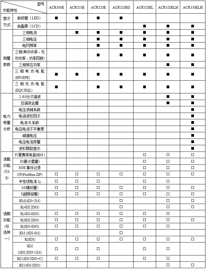 ACR 系列网络多功能电力仪表,是针对电力系统、工矿企业、公用设施、智能大厦的电力监控需求而设计的智能 表,它集成电力参数的测量(如单相或者三相的电流、电压、有功功率、无功功率、视在功率、频率、功率因数) 以及电能监测和考核管理。同时它具有多种外围接口功能可供用户选择:带有 RS485 通讯接口,采用 MODBUS-RTU 协议可满足通讯联网管理的需要;4-20mA 的模拟量输出可与任意测量的电参量相对应,满足 DCS 等接口要求; 带开关量输入和继电器输出可实现断路器开关的“遥信”和“遥控”的功能,采用高亮度 LED/LCD 显示界面,通 过面板按键来实现参数设置和控制,非常适合于实时电力监控系统。可以直接取代常规电力变送器及测量仪表。 作为一种先进的智能化、数字化的端采集元件,该电力仪表已广泛应用于各种控制系统,SCADA 系统和能源管 理系统中。产品符合企业标准《ACR 系列网络电力仪表》的规定。