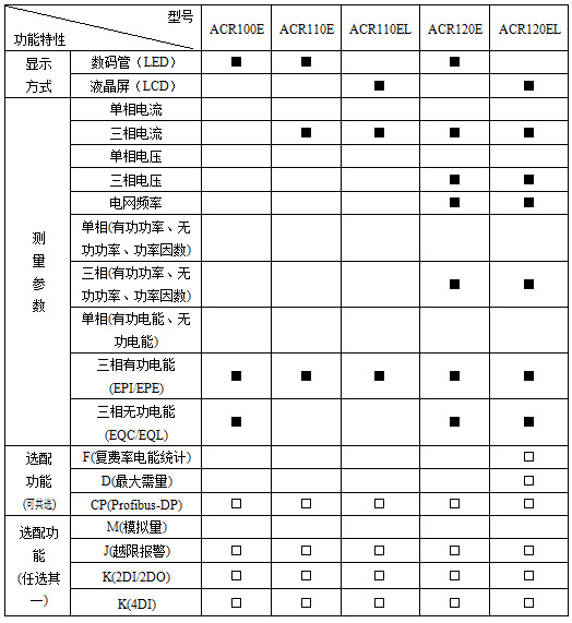 三相四线数显多功能网络仪表RS485通讯产品选型: