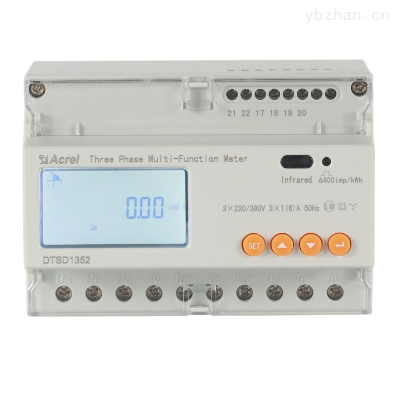 DTSD1352 导轨式多功能电能表,是主要针对电力系统,工矿企业,公用设施的电能统计、管理需求而设计的一款智能仪表,产品具有精度高、体积小、安装方便等优点。集成常见电力参数测量及电能计量及考核管理,提供上 48 月的各类电能数据统计。具有 2~31 次分次谐波与总谐波含量检测,带有开关量输入和开关量输出可实现“遥信”和“遥控”功能,并具备报警输出。带有 RS485 通信接口,可选用 MODBUS-RTU 或 DL/T645 协议。该电力仪表可广泛应用于各种控制系统,SCADA 系统和能源管理系统,分布式光伏并网柜的功率监测中。