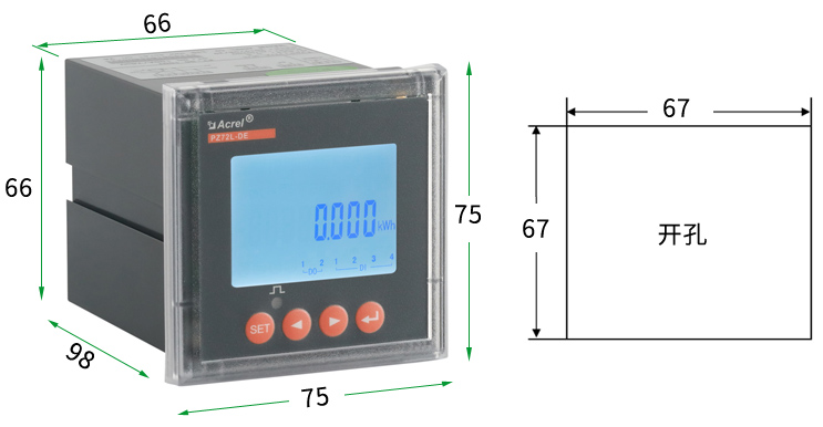 光伏太阳能用嵌入式数码显示直流电能表外形尺寸:
