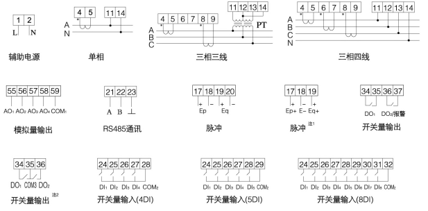 注1:适用于单相电能表及开关量为8DI/2DO的场合;