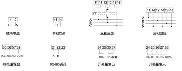 3、PZ80(L)-E3(4)在选配KC(4DI)功能时具备1路有功电能脉冲信号输出端口,在选配KC(2DI/2DO、5DI/2DO)功能时无脉冲信号输出端口;
