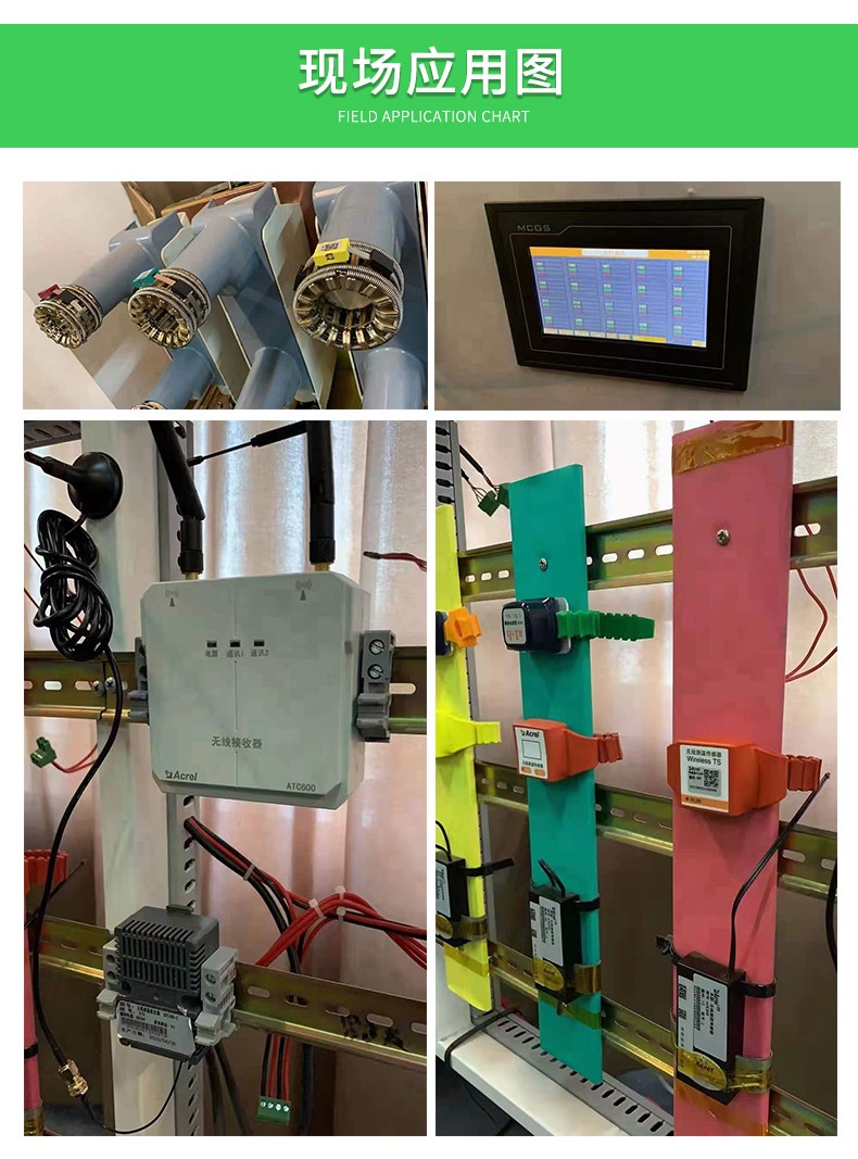 ARTM-Pn无线测温装置:ARTM-Pn无线测温装置可以单独安装在高压柜、低压抽屉柜内,每台装置可以接收18个传感器的数据,传感器型号可选配ATE100、ATE200、ATE300。装置带有一路485接口,可将采集到的温度数据上传到监控中心。