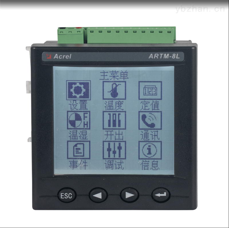 ARTM8温度巡检仪:ARTM系列温度巡检测控仪适用于一路或多路温度的测量和控制,主要应用于火电厂、水电站等场合的温度巡检测量及控制。测量8通道Pt100温度,也可以屏蔽其中任意通道。每一通道温度测量对应2段报警,继电器输出可以任意设置向及报警值。