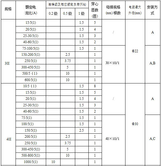 注:额定一次电流的标准值为:10A、12.5A、15A、20A、25A、30A、40A、50A、60A、75A以及它们十进位倍数或小数,有下标线的是优先值。