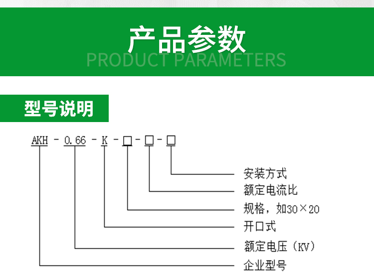 AKH-0.66K系列开口式电流互感器安装方便,无须拆一次母线,亦可带电操作,不影响客户正常用电,可与继电器保护、测量以及计量装置配套使用。
