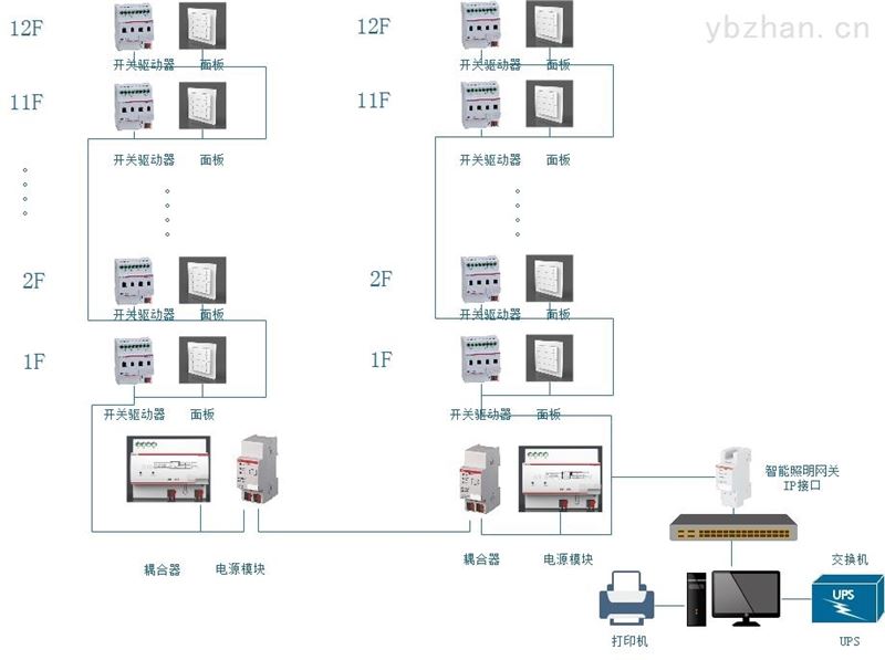Acrel-BUS智能照明控制系统采用标准的2×2×0.8 EIB BUS总线(即KNX总线)作为总线线缆,将所有的智能照明控制模块连接到一起并组成一套完整的控制系统,即可实现照明灯具的远程集中控制,又可实现就近控制功能。该系统理论大连接控制模块数量达58000多个。