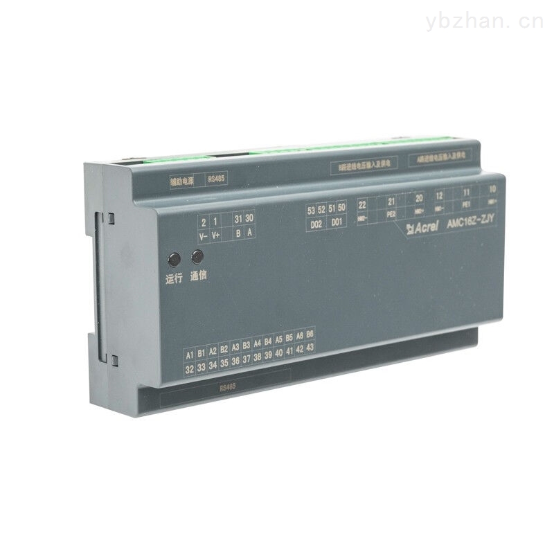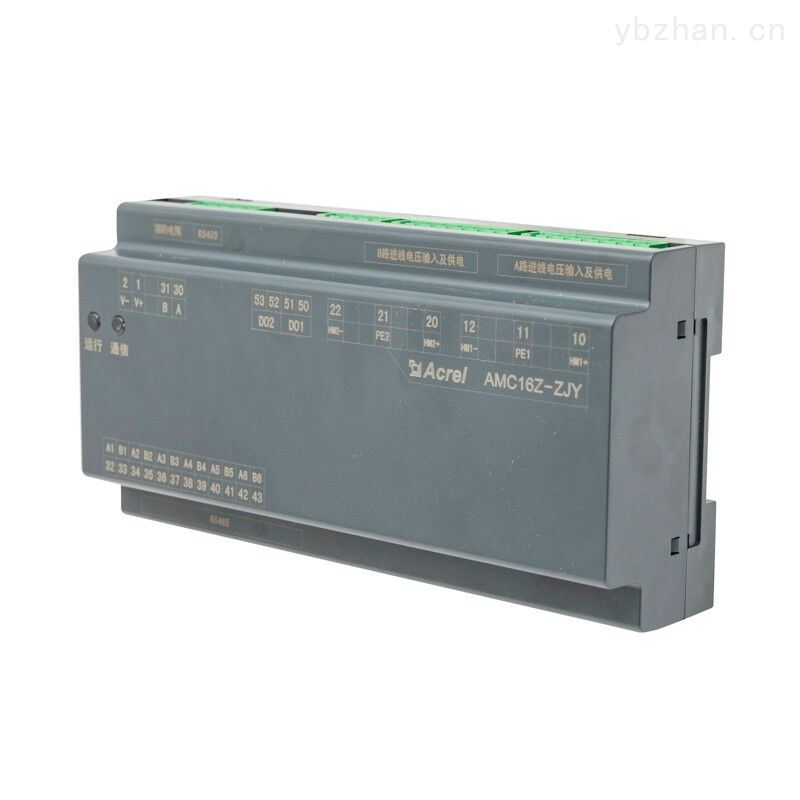 AMC16Z-ZJY | 监测A+B双路直流进线回路的母线电压、母线对地电压、母线绝缘状态等,一路RS485接口(A\B)用于连接至触摸屏或者RS485集线器;一路RS485接口(A1\B1)用于连接AMC16Z-FJY。 |