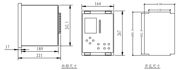 闭锁有载解压遥调急停主变后备保护测控装置外形尺寸: