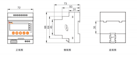 导轨式1路漏电火灾探测器产品外形尺寸: