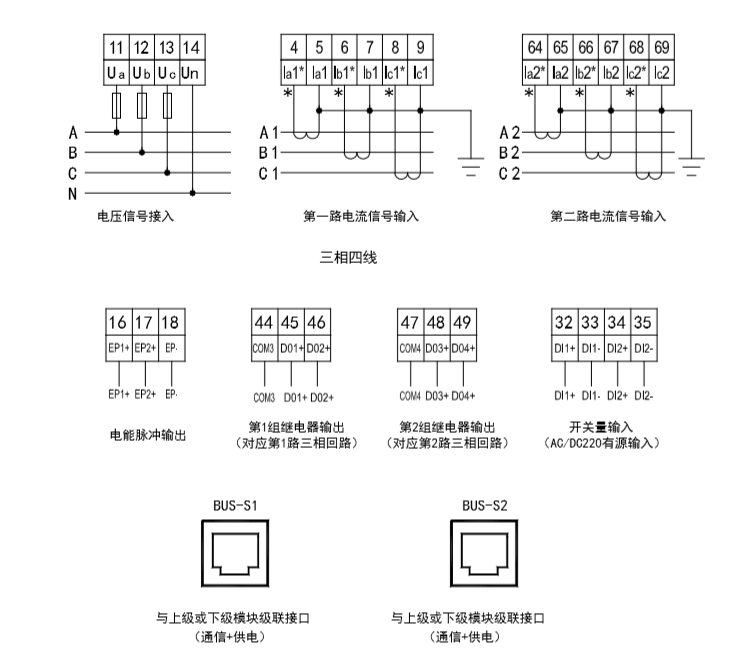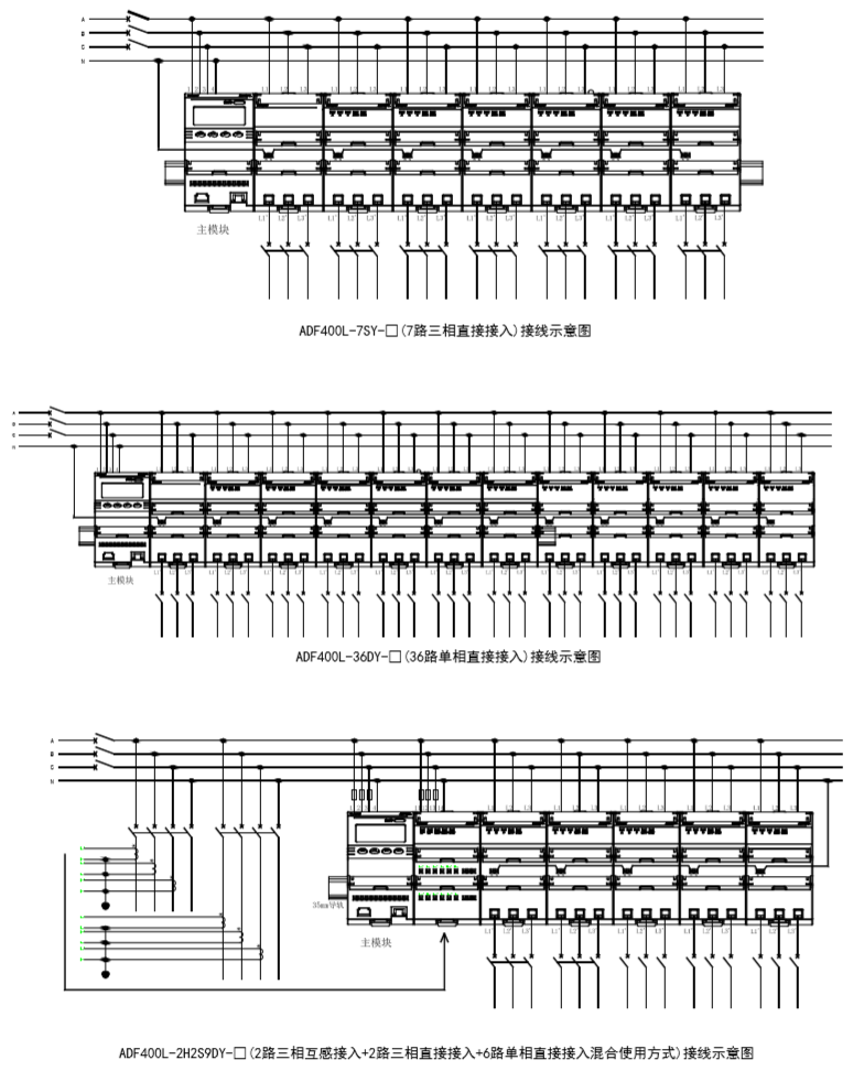 注:1、产品由主模块、直接接入模块及互感器接入模块组成;