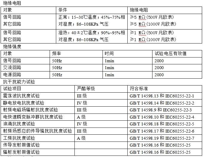 电磁兼容:装置强弱电严格分开,采取硬件、软件抗干扰措施,装置的抗干扰能力大大提高,对外电磁辐射满足相关标准。