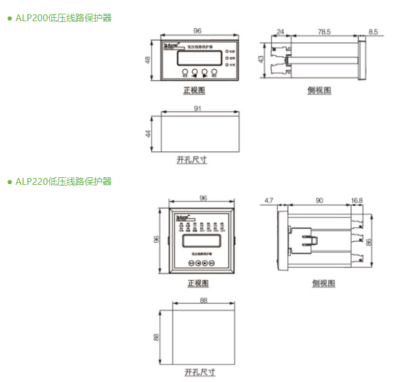 ALP200、ALP220、ALP320 系列智能型低压线路保护器(以下简称 ALP),适用于额定电压至AC 660V、额定电流至 AC 400A、额定频率为 50/60Hz 的低压系统。产品体积小,结构紧凑,安装方便,是低压馈线终端的保护、监测和控制的智能化综合装置。