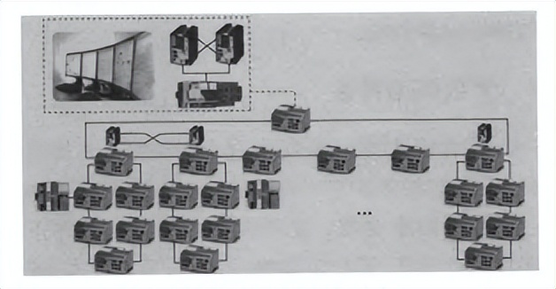 (3)分级式网络架构。每1~2 km设置控制PLc,其间5~10个ACU采用远程IO。这些PLc再组成环网,*终上传到监控中心。分级式网络架构如图3所示。