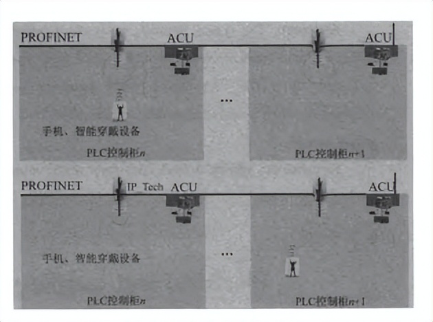 为现场ACu配置无线模块,巡检人员通过移动设备(手机、Pad、智能穿戴设备)接入到现场无线中,通过IP—Tech技术将巡检人员连接数据上传至监控中心实时监测巡检人员的当前位置。巡检人员定位示意如图4所示。
