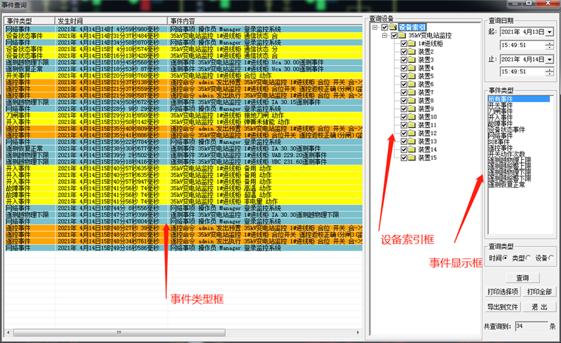 监控系统具有事故报警功能。事故报警包括非正常操作引起的断路器跳闸和保护装置动作信号;预告报警包括一般设备变位、状态异常信息、模拟量或温度量越限等。