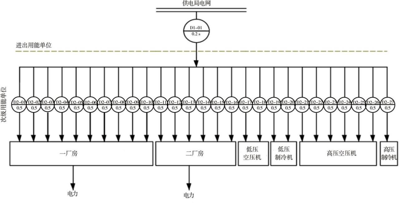 完善能源信息的采集、存储、管理和能源的有效利用。EMS对能源数据进行分析、处理和加工,能源调度人员和专业能源管理人员能实时掌握系统状态,经过系统的合理调整,确保系统运行在*佳状态。能源统计全面。EMS从企业全局角度审视能源的基本管理需求,满足能源工艺系统分散特性和能源管理需要集中的客观要求,以适应企业的战略发展需要。图1为我厂电力供应网络图。电力数据通过不同计量层级的智能仪表进行采集、传输。及时掌握各车间、部门的能源利用水平,是企业层面进行能源生产调度的基础。相比人工采集,EMS采集的数据是同一时间断面的数据,更全面、准确。通过对不同层级能源数据的汇总、分析对比,对企业能源平衡、能源利用和能源损耗的情况了解得十分具体。