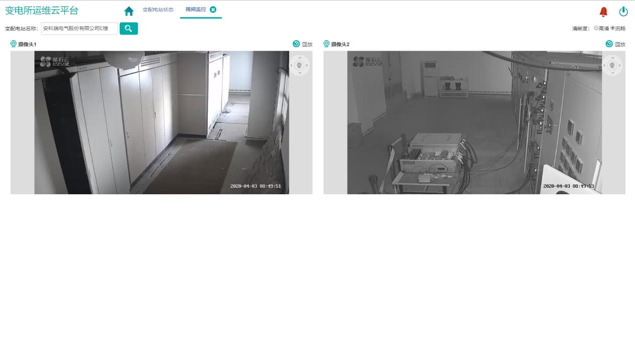 视频监控展示了当前实时画面(视频直播),选中某一个变配电站,即可查看该变配电站内视频信息。